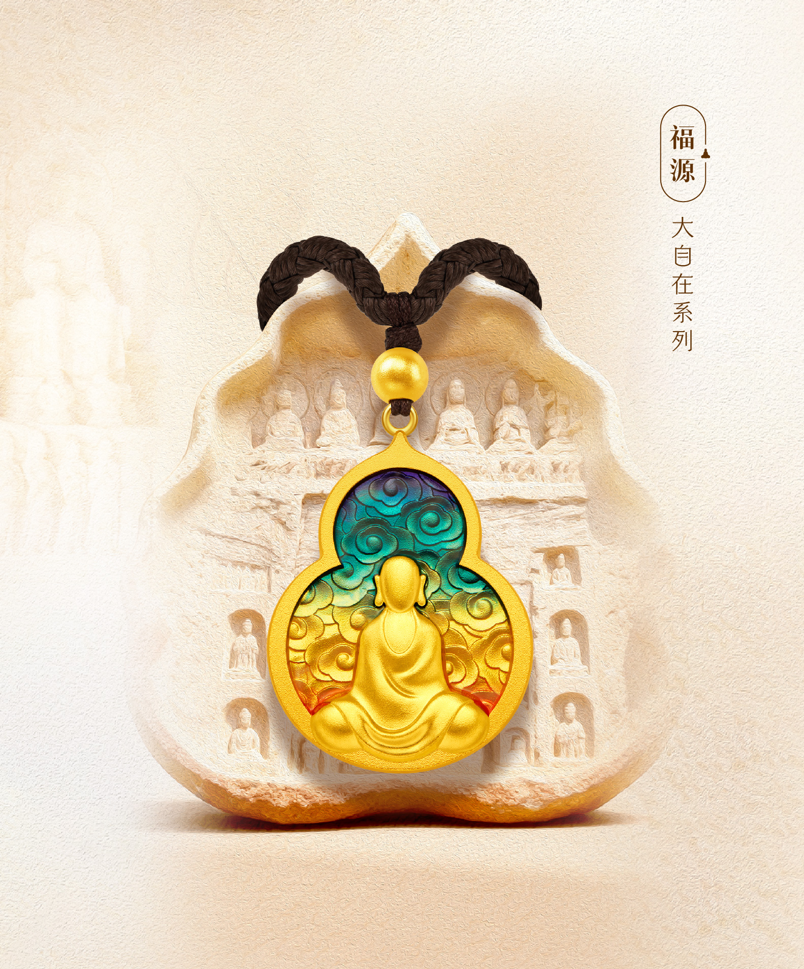 设计取葫芦之优美形态,藏无相之佛的深邃禅意。葫芦圆润饱满,恰似福气充盈、绵延不绝的盛器,