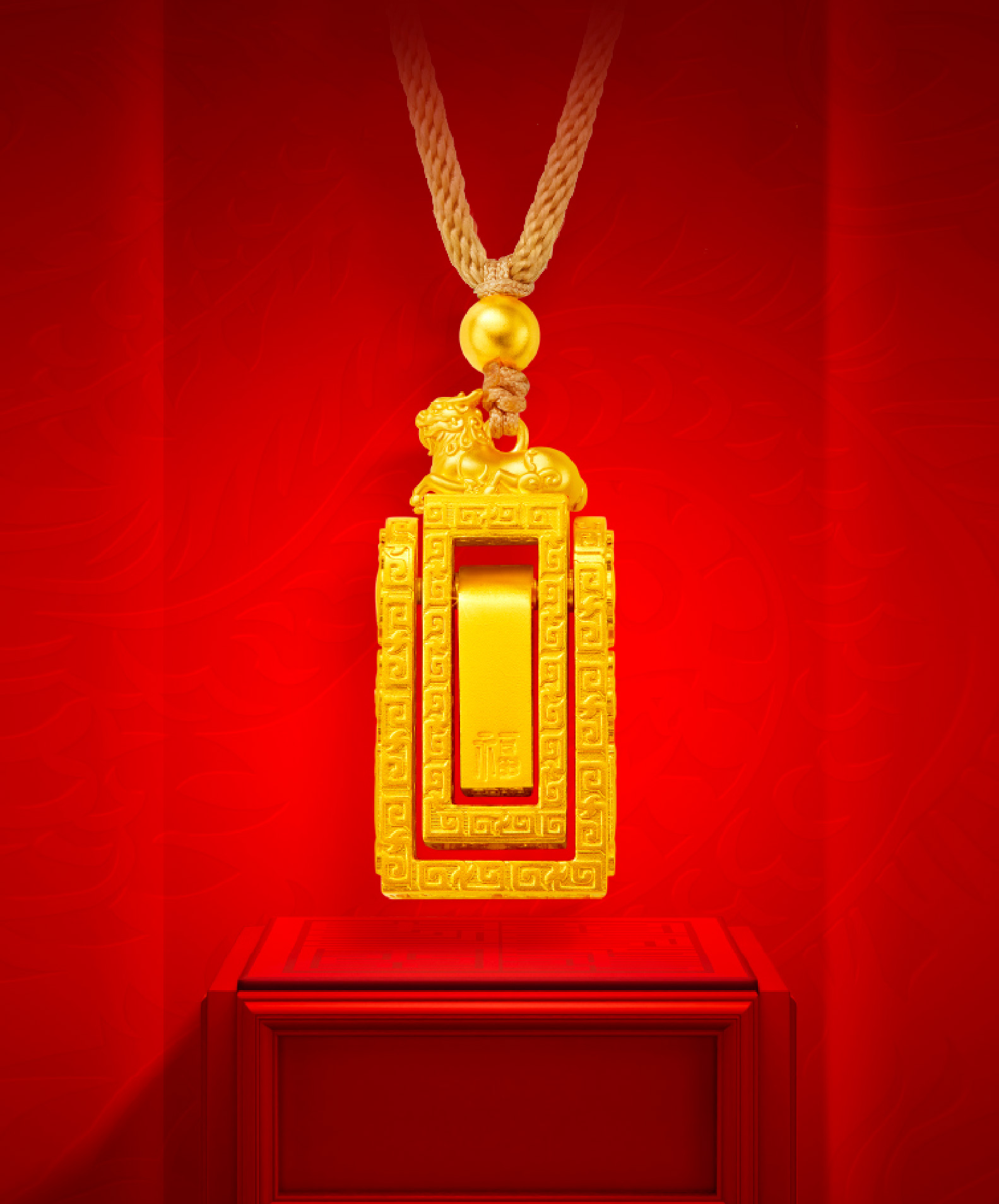 黄金首饰延续文物原型经典的三合连环式结构:一侧边沿设活动轴心,