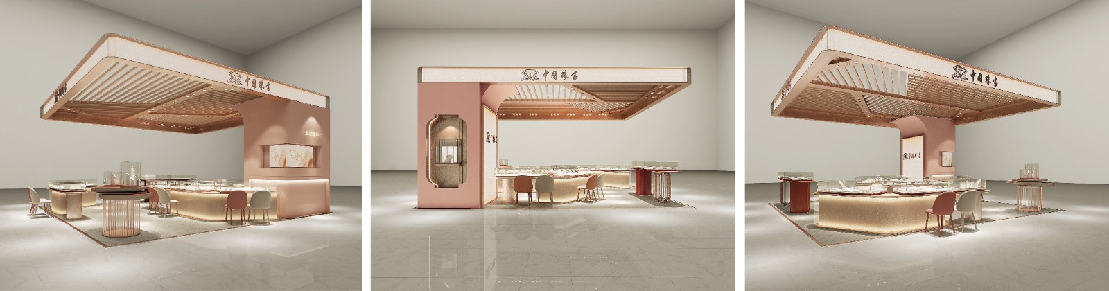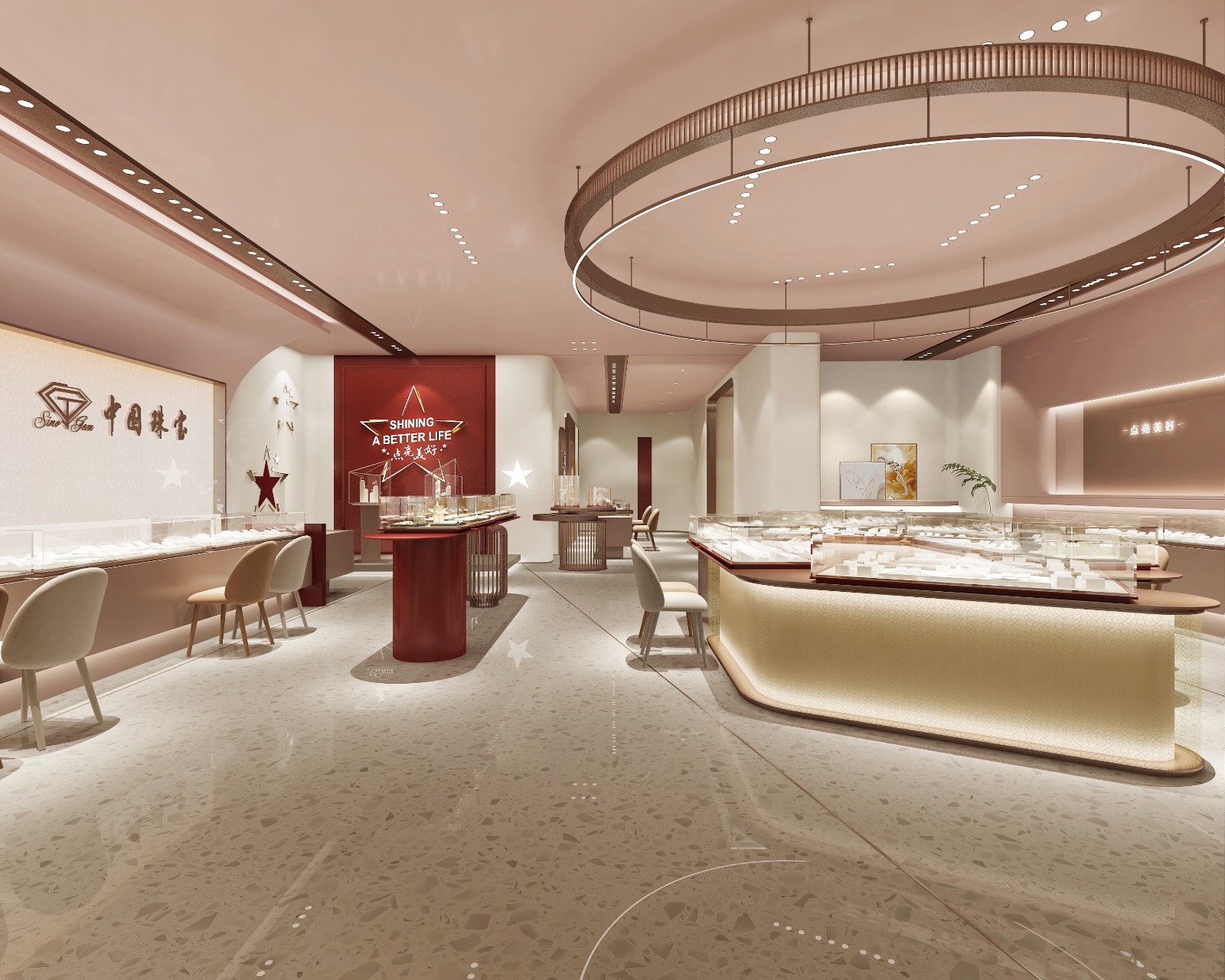 整个SI系统囊括了“中国珠宝”品牌的旗舰店、边厅、中岛三种不同规格的设计,又让三种空间的风格统一。体现了品牌在视觉上的一致性。